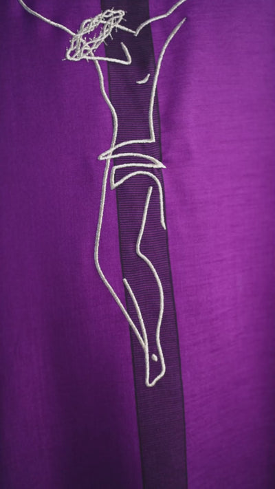 Casula con motivo di Gesù sulla croce in colore viola