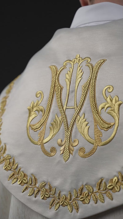 Piviale ricamata mariana color ecru