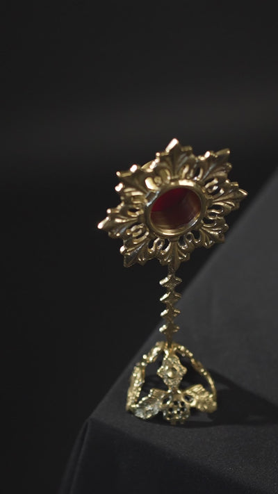 Reliquiario in ottone riccamente decorato, realizzato con la massima cura e attenzione ai dettagli.
